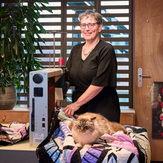 ‘Ik heb een heerlijk vol leven, met veel vrienden en veel om handen. Zeker, ik ben behoorlijk actief. Maar ik kan ook rustig op de bank zitten hoor, met de ogen dicht. Dan kom ik heerlijk tot mezelf. Maar eerlijk is eerlijk, dan plopt er toch weer snel een nieuw idee in mijn hoofd op. Waarvoor? Voor een quilt natuurlijk.’